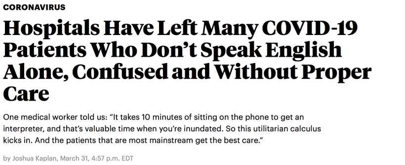 Taking language barrier as an example: It's reported that patients with limited English proficiency widely suffered from long waiting times and high medical error rates caused by miscommunication which could even lead to their death.